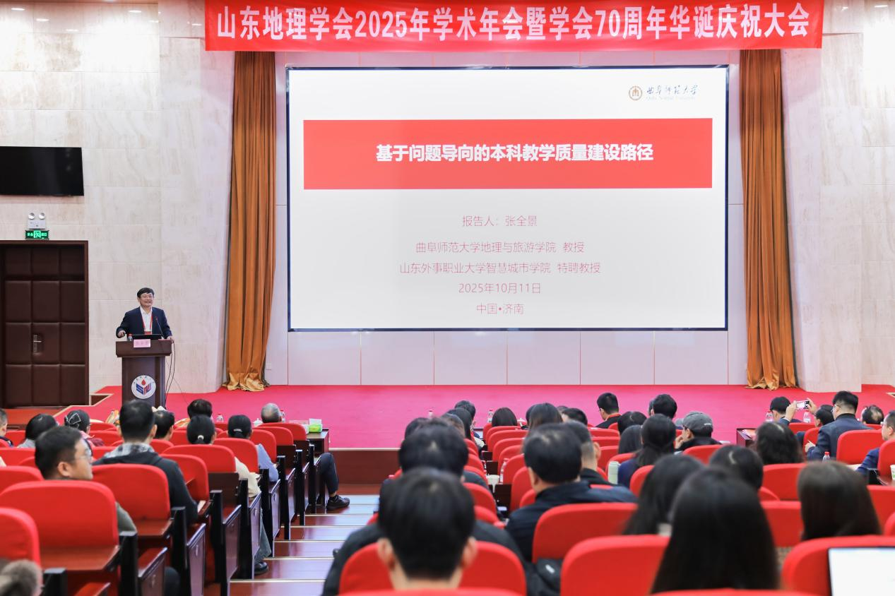 会议期间,张全景作了“基于问题导向的本科教学质量建设路径”大会主旨报告,并主持了山东地理学会70周年华诞庆祝活动圆桌论坛;吴军作为第二分会场“土地资源可持续利用与城乡融合发展”的评议人对参会专家的报告进行了现场评议;李宝富在第四分会场作了“近20年亚欧大陆秋季降温驱动机制研究”的报告,并作为该会场评议人对报告进行了现场评议;张家辉作为第七分会场“新时代地理教育发展与创新实践”评议人对报告进行了现场评议;郭付友作为第三分会场“黄河流域生态文明建设与区域绿色发展”评议人对报告进行了现场评议;赵林在第三分会场作了“黄河流域生态福利绩效时空格局演变及其组态机制”,并作为主持人主持了该分会场的报告;赵爽在第六分会场作了“中国北方风成沉积记录的全新世沙尘暴演化历史”的报告;孙丕苓在第七分会场作了“关于国家一流课程建设的思考——以《农村土地利用和政策创新》为例”的报告;李梦程在第三分会场作了“基于 DH-RF 模型的黄河流域净碳排放与经济发展的关系预测及影响机制研究”的报告;参会研究生多人获山东地理学会2025年会一、二、三等奖优秀论文,并在各会场作学术报告。