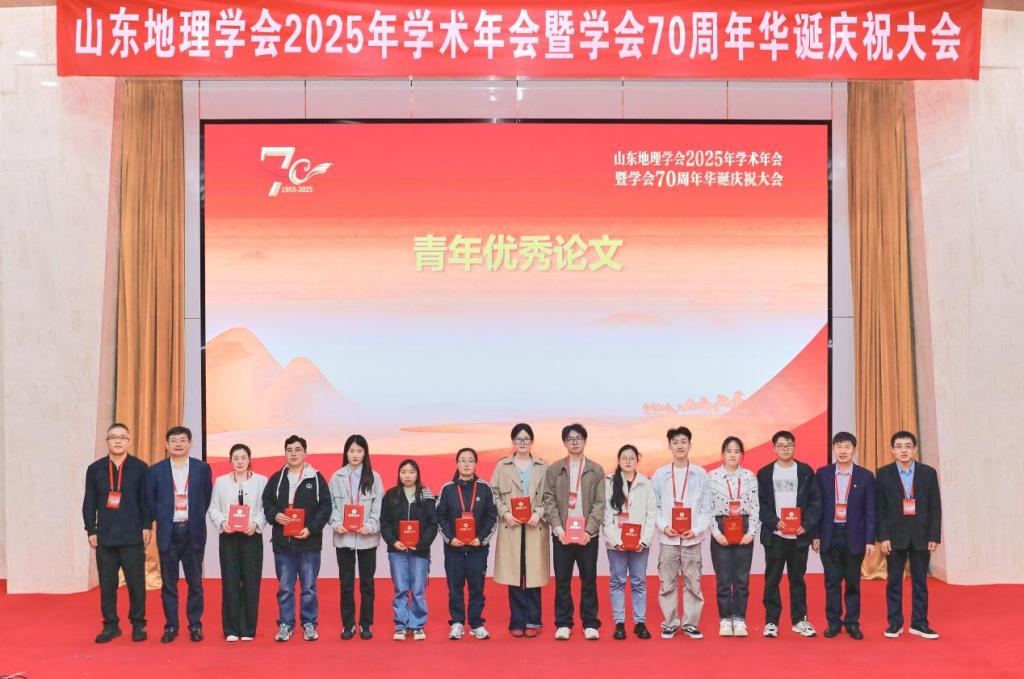 代合治教授获山东地理学会突出贡献奖;郭付友和郭浩获山东地理学会青年科技奖。