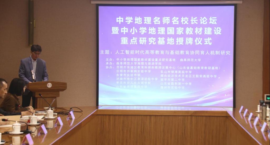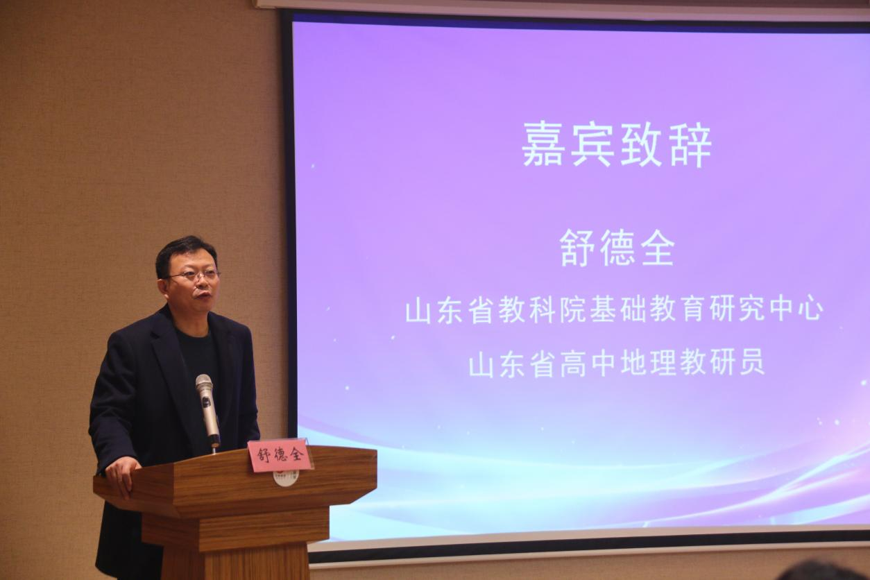 组织本次会议,祝贺10所学校入选为中小学地理国家教材建设重点研究基地实验学校。舒德全老师表示,此次授牌,既是一份荣誉,更是一份责任,希望各实验基地学校珍惜机会,积极配合教材研究工作,努力成为教材使用与研究的“示范田”和“排头兵”,为国家教材建设贡献山东智慧和山东力量。