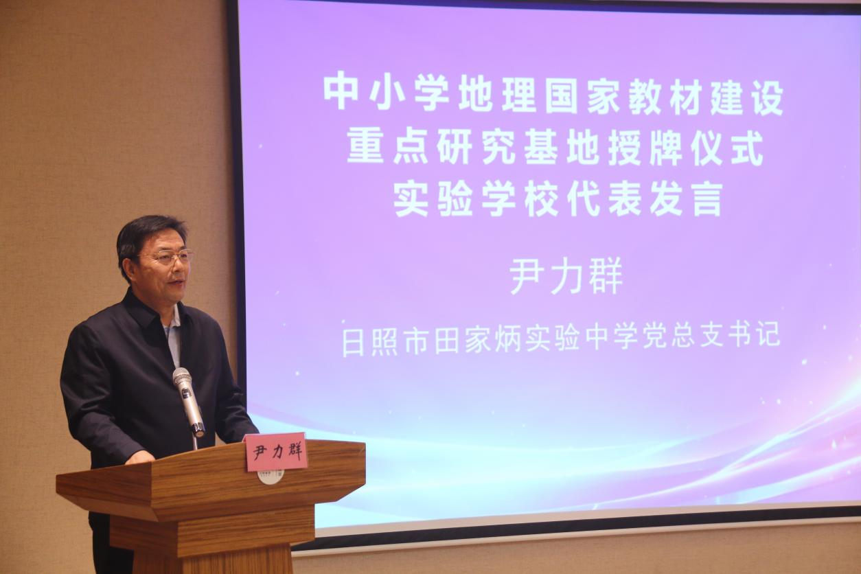 日照市田家炳实验中学尹力群书记作为实验学校代表发言。他表示,学校将以“学习者”“试验田”和“协同者”的定位,积极参与教材试用与教学案例开发,推动国家教材理念在基层课堂中落地生根,为地理教育高质量发展贡献实践智慧。