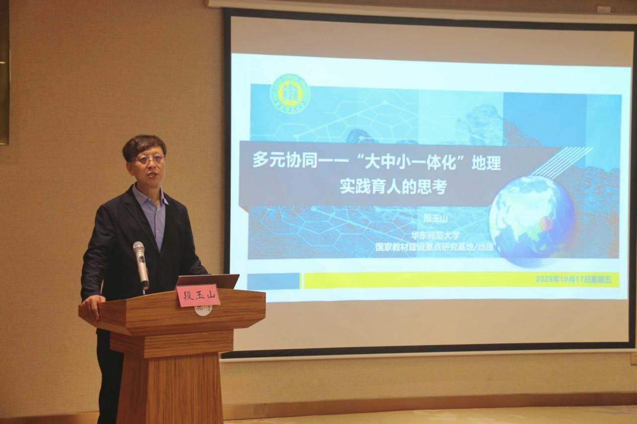 建院40周年,2025年10月17日,我国地理教育领域的权威专家、中小学地理国家教材建设重点研究基地主任、中国教育学会地理教学专业委员会理事长、《地理教学》杂志主编、华东师范大学地理科学学院段玉山教授做客“经纬讲堂·高端论坛”,为学院师生作了题为《多元协同——“大中小一体化”地理实践育人的思考》的精彩学术报告。报告会由电影天堂