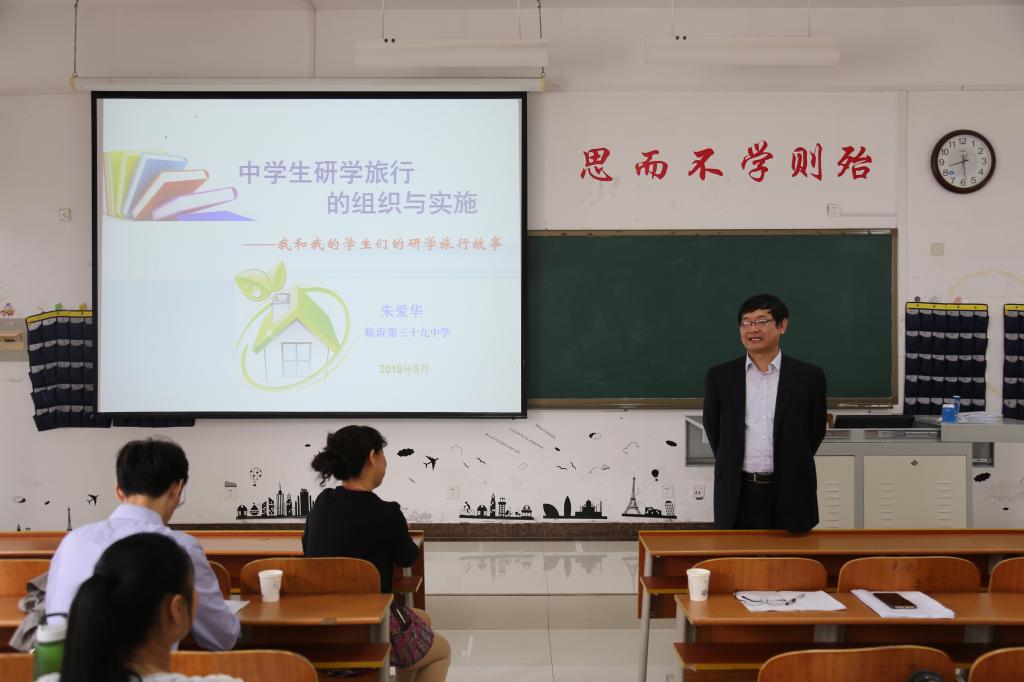 报告会围绕中学生研学旅行课程,从研学旅行课程开发、组织实施等方面进行了详细讲解,并以临沂为例,展示了多个突出区域特色、历史文化、学生年龄特点的课程方案和具体教学设计。朱老师分享了国内外多个研学旅行课程实施的收获和体会,她指出研学旅行是素质教育的新内容和新方式,对于提升学生的自理能力、创新精神和实践能力,促进理论知识与具体实践相结合,进一步提高地理教学专业素养具有重要的作用。朱老师还总结了研学旅行中的困难与不足,并提出相应的解决方案。