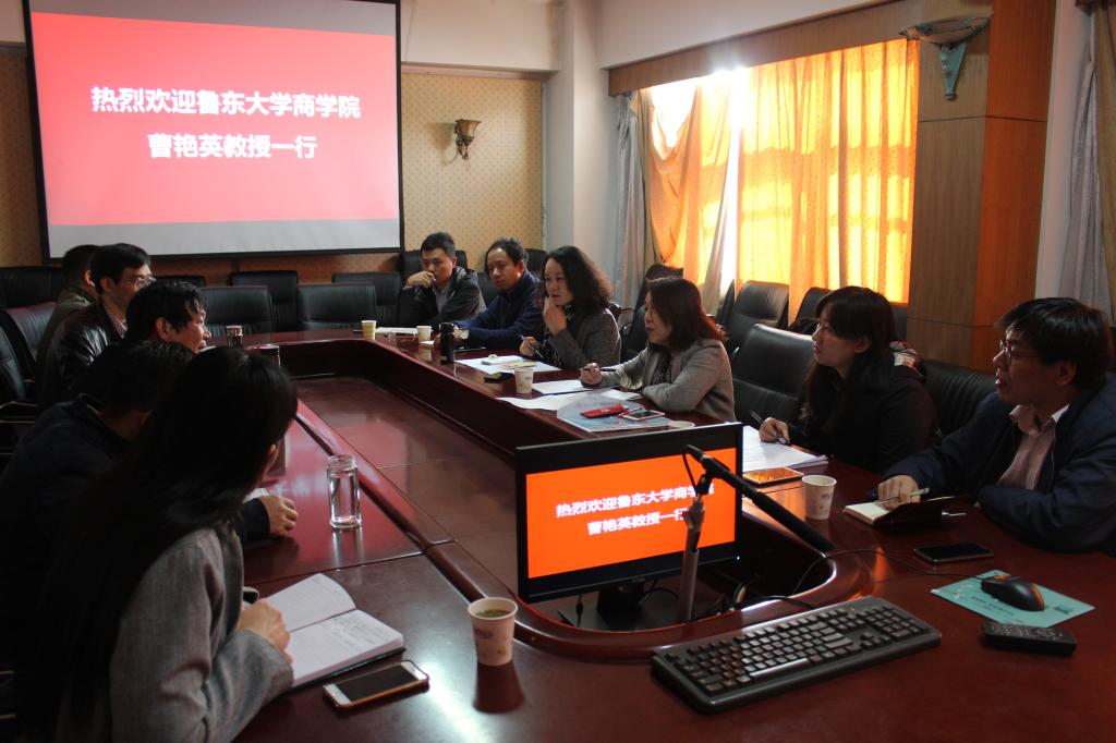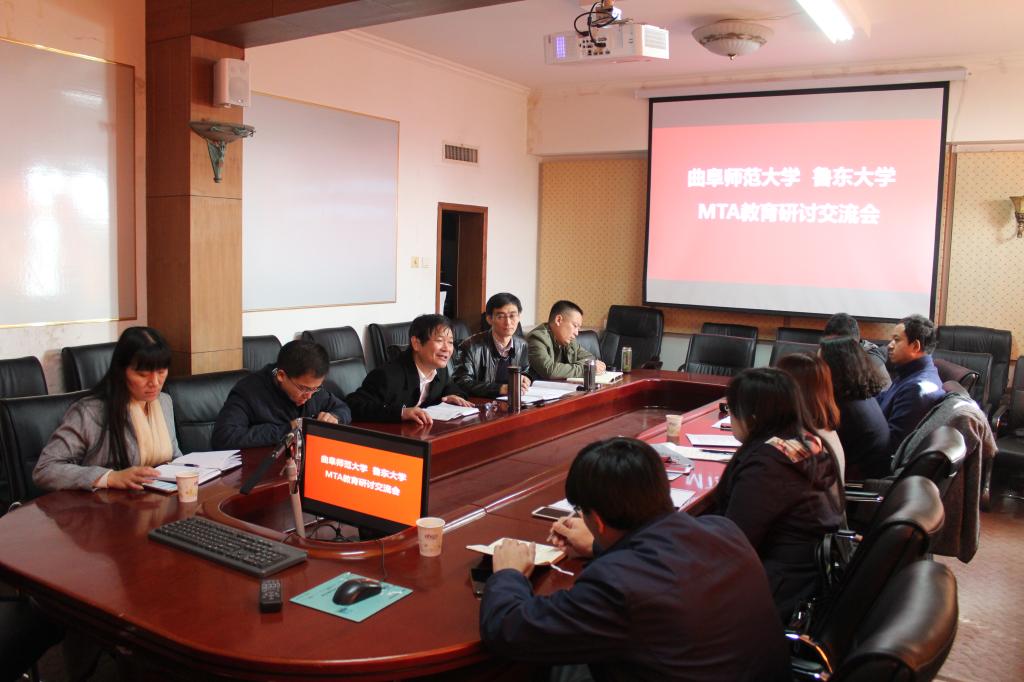 11月8日-9日,鲁东大学商学院旅游管理系主任曹艳英教授率领骨干教师来电影天堂 交流。胡长春书记、张全景院长会见了曹教授一行,并就开展相互合作交流、建立MTA教育院校联盟等达成了初步意向。曹教授一行参观了MTA教育中心档案室,并和相关领导和老师围绕MTA教育进行了研讨交流。